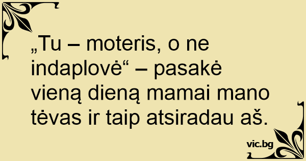 „Tu – moteris, o ne indaplovė“ – pasakė vieną dieną mamai mano tėvas ir taip atsiradau aš.