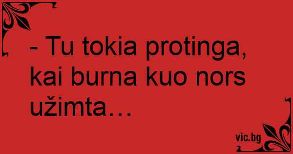 - Tu tokia protinga, kai burna kuo nors užimta…