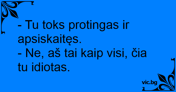 - Ne, aš tai kaip visi, čia tu idiotas.