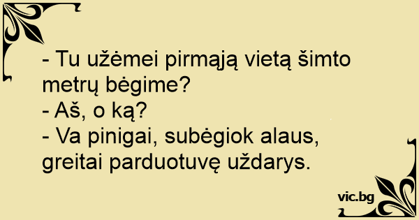 - Va pinigai, subėgiok alaus, greitai parduotuvę uždarys.