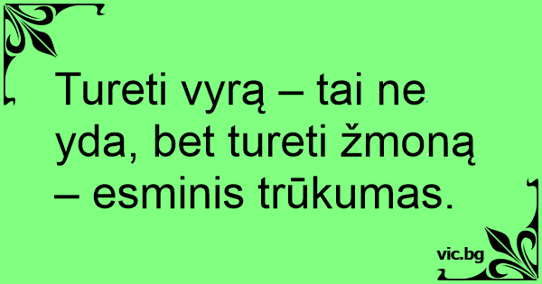 Tureti vyrą – tai ne yda, bet tureti žmoną – esminis trūkumas.