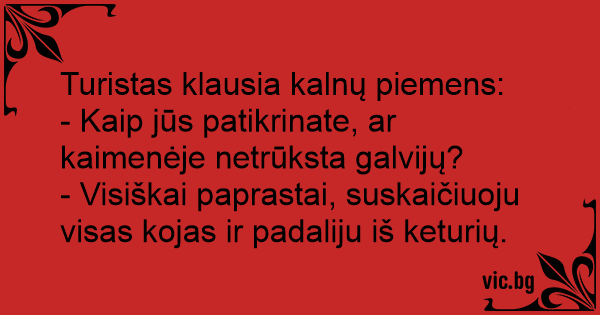 - Visiškai paprastai, suskaičiuoju visas kojas ir padaliju iš keturių.