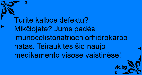 Turite kalbos defektų? Mikčiojate? Jums padės imunocelistonatriochlorhidrokarbonatas. Teiraukitės šio naujo medikamento visose vaistinėse!