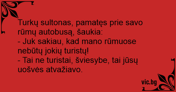 Turkų sultonas, pamatęs prie savo rūmų autobusą, šaukia: