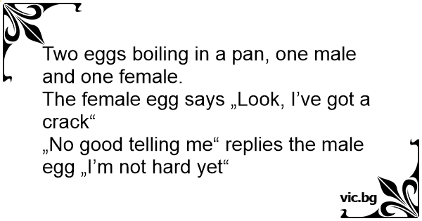 „No good telling me“ replies the male egg „I’m not hard yet“