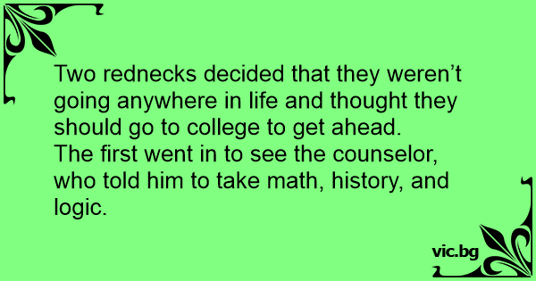 Two rednecks decided that they weren’t going anywhere in life and thought they should go to college to get ahead.