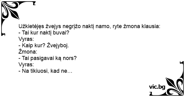 Užkietėjęs žvejys negrįžo naktį namo, ryte žmona klausia: