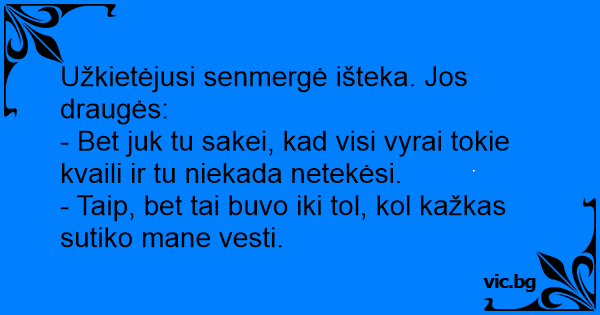 - Bet juk tu sakei, kad visi vyrai tokie kvaili ir tu niekada netekėsi.