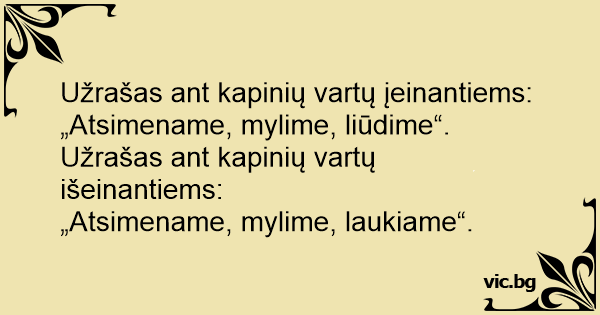 Užrašas ant kapinių vartų įeinantiems: „Atsimename, mylime, liūdime“.
