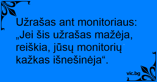 Užrašas ant monitoriaus: „Jei šis užrašas mažėja, reiškia, jūsų monitorių kažkas išnešinėja“.