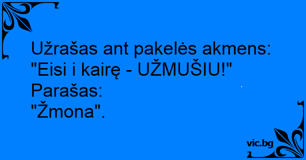 "Eisi i kairę - UŽMUŠIU!"