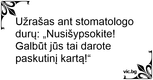 Užrašas ant stomatologo durų: „Nusišypsokite! Galbūt jūs tai darote paskutinį kartą!“