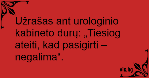 Užrašas ant urologinio kabineto durų: „Tiesiog ateiti, kad pasigirti – negalima“.