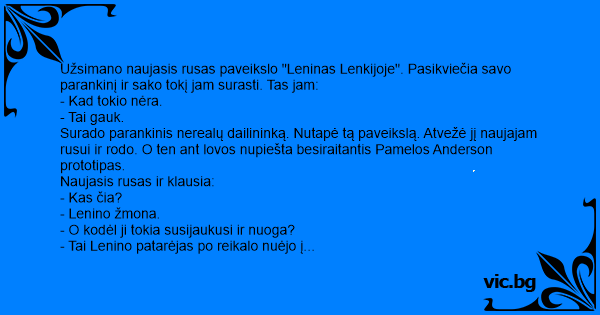 Surado parankinis nerealų dailininką. Nutapė tą paveikslą. Atvežė jį naujajam rusui ir rodo. O ten ant lovos nupiešta besiraitantis Pamelos Anderson prototipas.