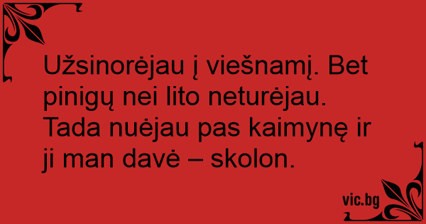 Užsinorėjau į viešnamį. Bet pinigų nei lito neturėjau. Tada nuėjau pas kaimynę ir ji man davė – skolon.