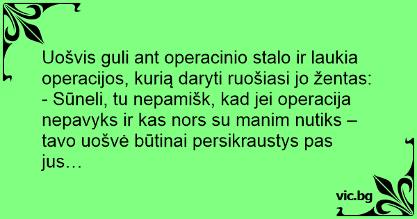 Uošvis guli ant operacinio stalo ir laukia operacijos, kurią daryti ruošiasi jo žentas: