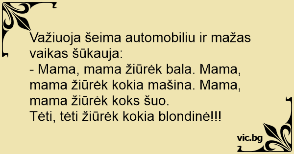 - Mama, mama žiūrėk bala. Mama, mama žiūrėk kokia mašina. Mama, mama žiūrėk koks šuo.