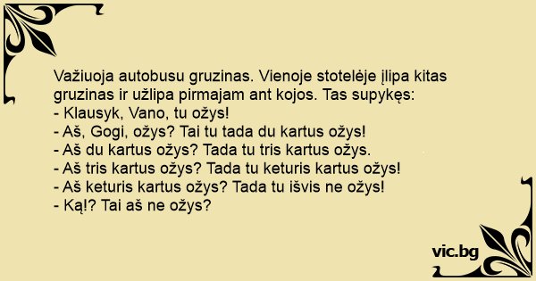 - Aš du kartus ožys? Tada tu tris kartus ožys.