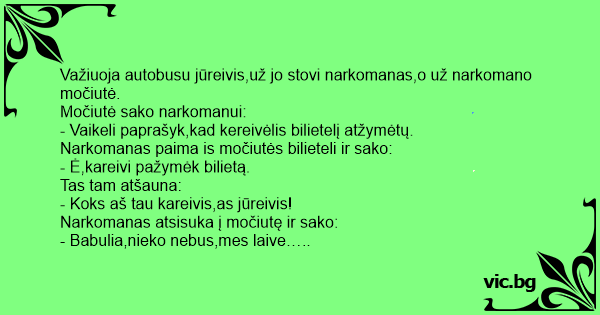 Važiuoja autobusu jūreivis,už jo stovi narkomanas,o už narkomano močiutė.