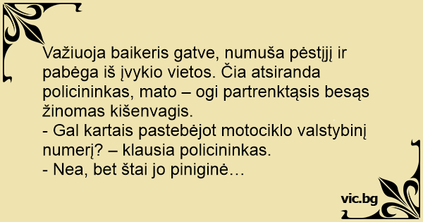 - Gal kartais pastebėjot motociklo valstybinį numerį? – klausia policininkas.