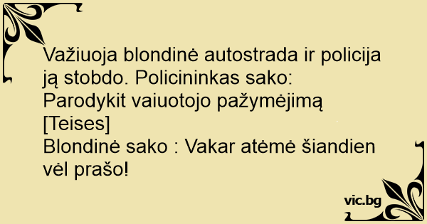 Blondinė sako : Vakar atėmė šiandien vėl prašo!