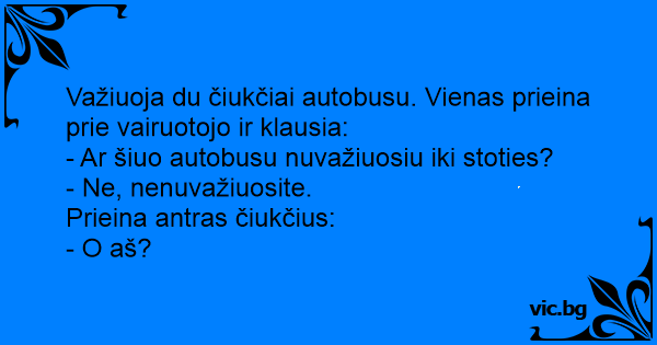 Važiuoja du čiukčiai autobusu. Vienas prieina prie vairuotojo ir klausia: