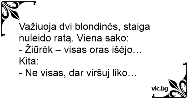 Važiuoja dvi blondinės, staiga nuleido ratą. Viena sako: