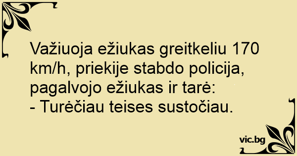 Važiuoja ežiukas greitkeliu 170 km/h, priekije stabdo policija, pagalvojo ežiukas ir tarė: