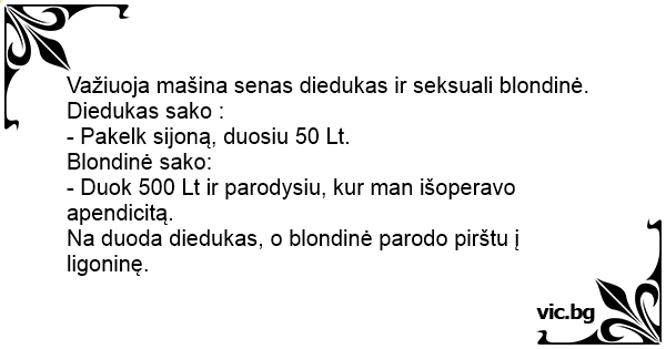 - Duok 500 Lt ir parodysiu, kur man išoperavo apendicitą.