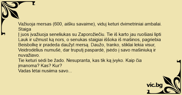 Važiuoja mersas (600, aišku savaime), viduj keturi dvimetriniai ambalai. Staiga
