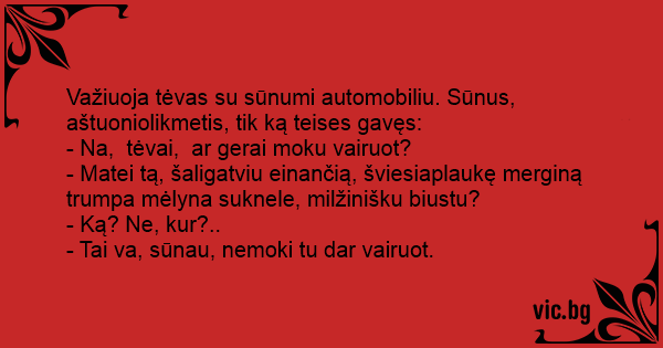 - Tai va, sūnau, nemoki tu dar vairuot.
