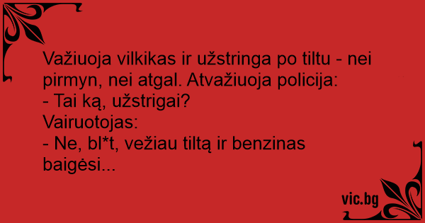 - Ne, bl*t, vežiau tiltą ir benzinas baigėsi...