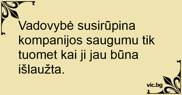 Vadovybė susirūpina kompanijos saugumu tik tuomet kai ji jau būna išlaužta.