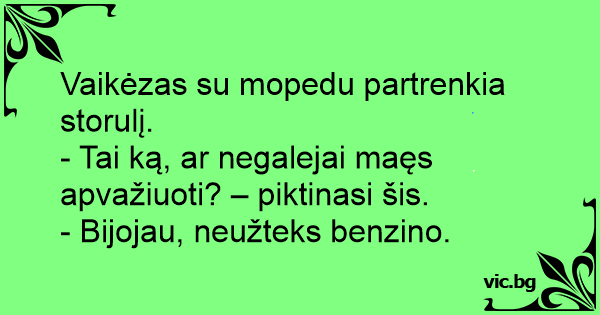 - Tai ką, ar negalejai maęs apvažiuoti? – piktinasi šis.
