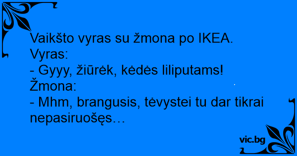Vaikšto vyras su žmona po IKEA. Vyras: