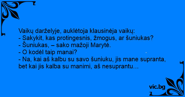 - Na, kai aš kalbu su savo šuniuku, jis mane supranta, bet kai jis kalba su manimi, aš nesuprantu…
