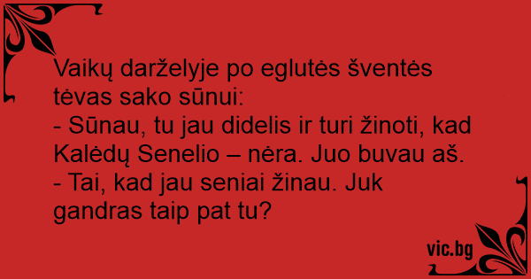 - Sūnau, tu jau didelis ir turi žinoti, kad Kalėdų Senelio – nėra. Juo buvau aš.