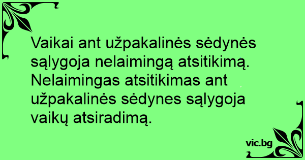 Vaikai ant užpakalinės sėdynės sąlygoja nelaimingą atsitikimą. Nelaimingas atsitikimas ant užpakalinės sėdynes sąlygoja vaikų atsiradimą.