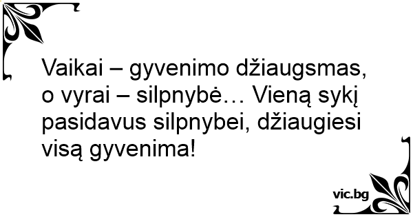 Vaikai – gyvenimo džiaugsmas, o vyrai – silpnybė… Vieną sykį pasidavus silpnybei, džiaugiesi visą gyvenima!