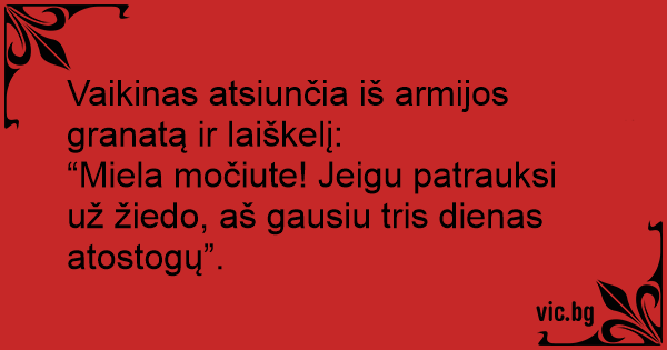 “Miela močiute! Jeigu patrauksi už žiedo, aš gausiu tris dienas atostogų”.