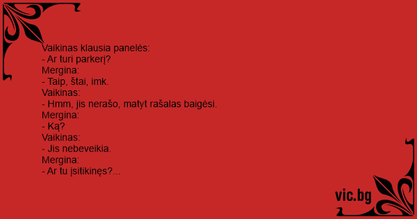 Vaikinas klausia panelės: -...