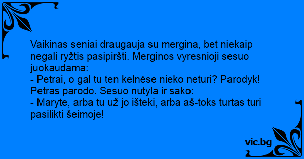- Maryte, arba tu už jo išteki, arba aš-toks turtas turi pasilikti šeimoje!
