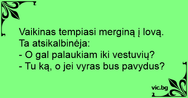 Vaikinas tempiasi merginą į lovą. Ta atsikalbinėja: