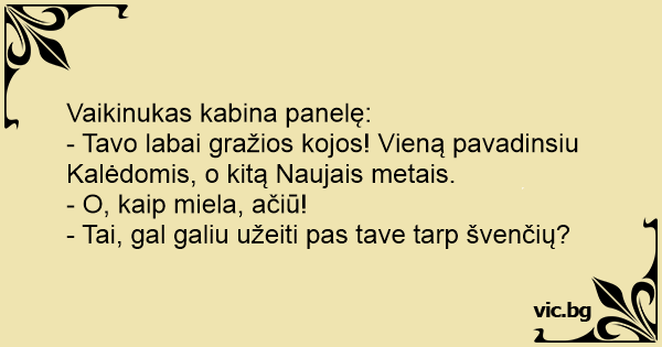 - Tavo labai gražios kojos! Vieną pavadinsiu Kalėdomis, o kitą Naujais metais.