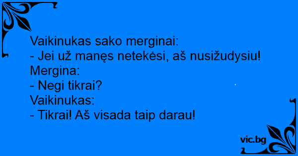 - Jei už manęs netekėsi, aš nusižudysiu!