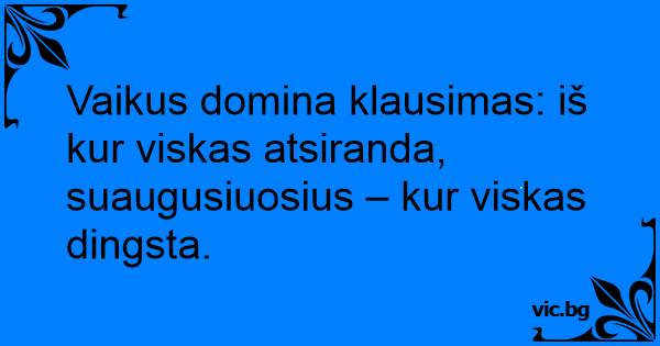Vaikus domina klausimas: iš kur viskas atsiranda, suaugusiuosius – kur viskas dingsta.