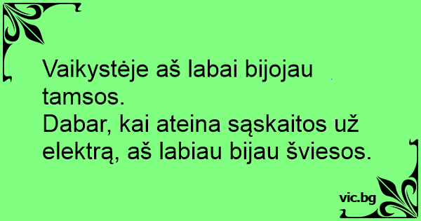 Dabar, kai ateina sąskaitos už elektrą, aš labiau bijau šviesos.