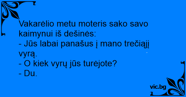Vakarėlio metu moteris sako savo kaimynui iš dešinės: