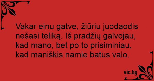 Vakar einu gatve, žiūriu juodaodis nešasi teliką. Iš pradžių galvojau, kad mano, bet po to prisiminiau, kad maniškis namie batus valo.