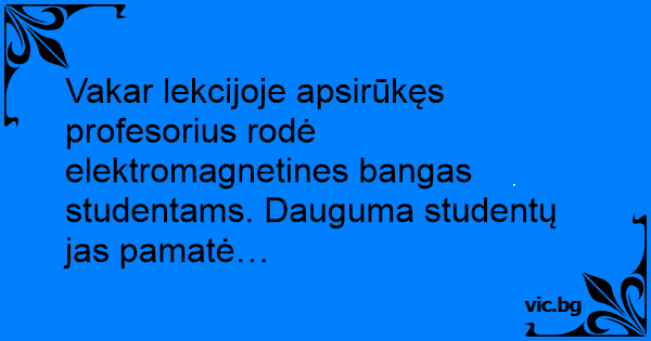 Vakar lekcijoje apsirūkęs profesorius rodė elektromagnetines bangas studentams. Dauguma studentų jas pamatė…